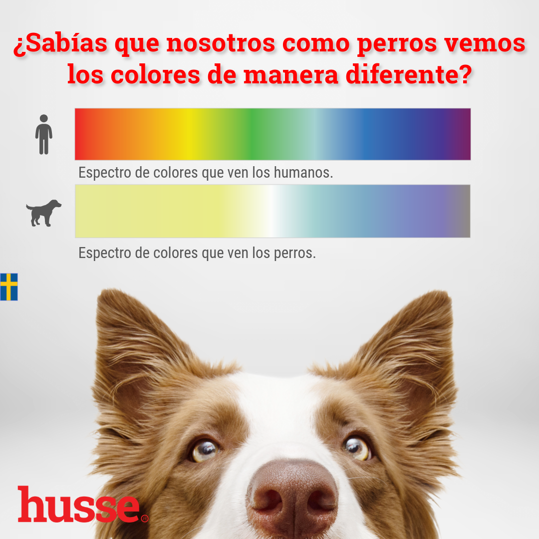 Los perros a diferencia de nosotros son dicromáticos esto quiere decir que distinguen dos colores la gamma de amarillos y de azules. Pero ¿Qué sucede con los demás colores? Mientras los colores se alejen de estas gamas, resultara difícil para el perro distinguirlas, por ejemplo, un objeto color naranja o verde lo percibirán con una tonalidad amarilla, mientras que los colores rojos o violetas los verán de color monocromático.
